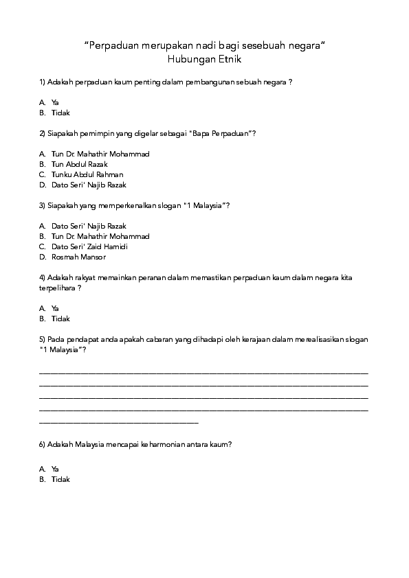 PDF) " Perpaduan merupakan nadi bagi sesebuah negara " Hubungan